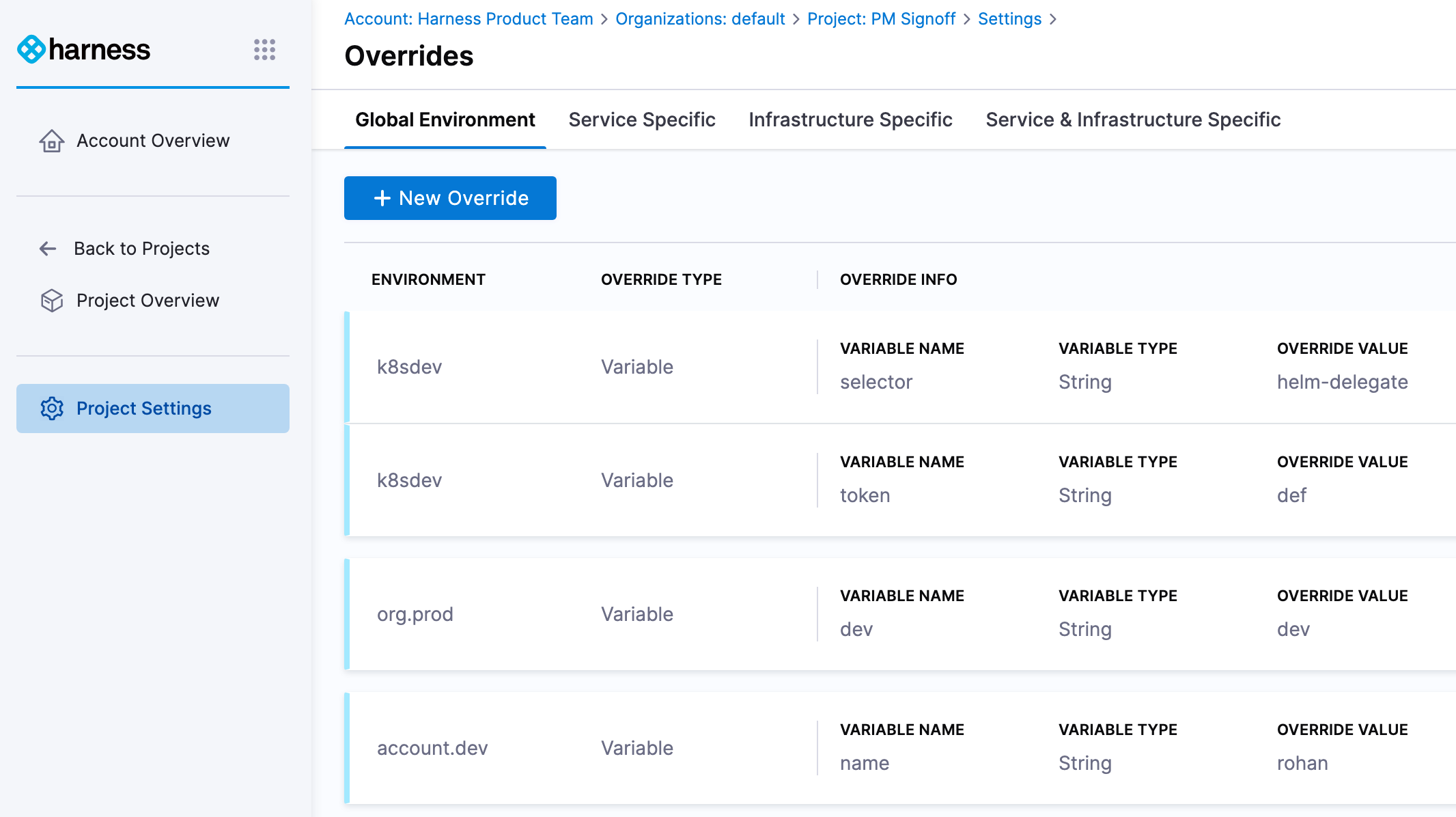 Overrides keep your service, environment, and pipelines generic and clean. They can be reused for any scenario and are flexible enough to handle any deployment with service and environment paring.