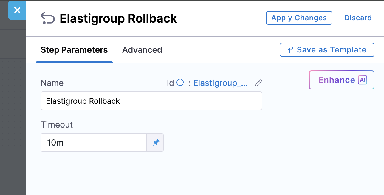 • In Inherit mode, if the step fails mid-execution, the rollback is handled by the Elastigroup Rollback step, which restores the traffic weights and names of the Elastigroups using the stored rollback data.