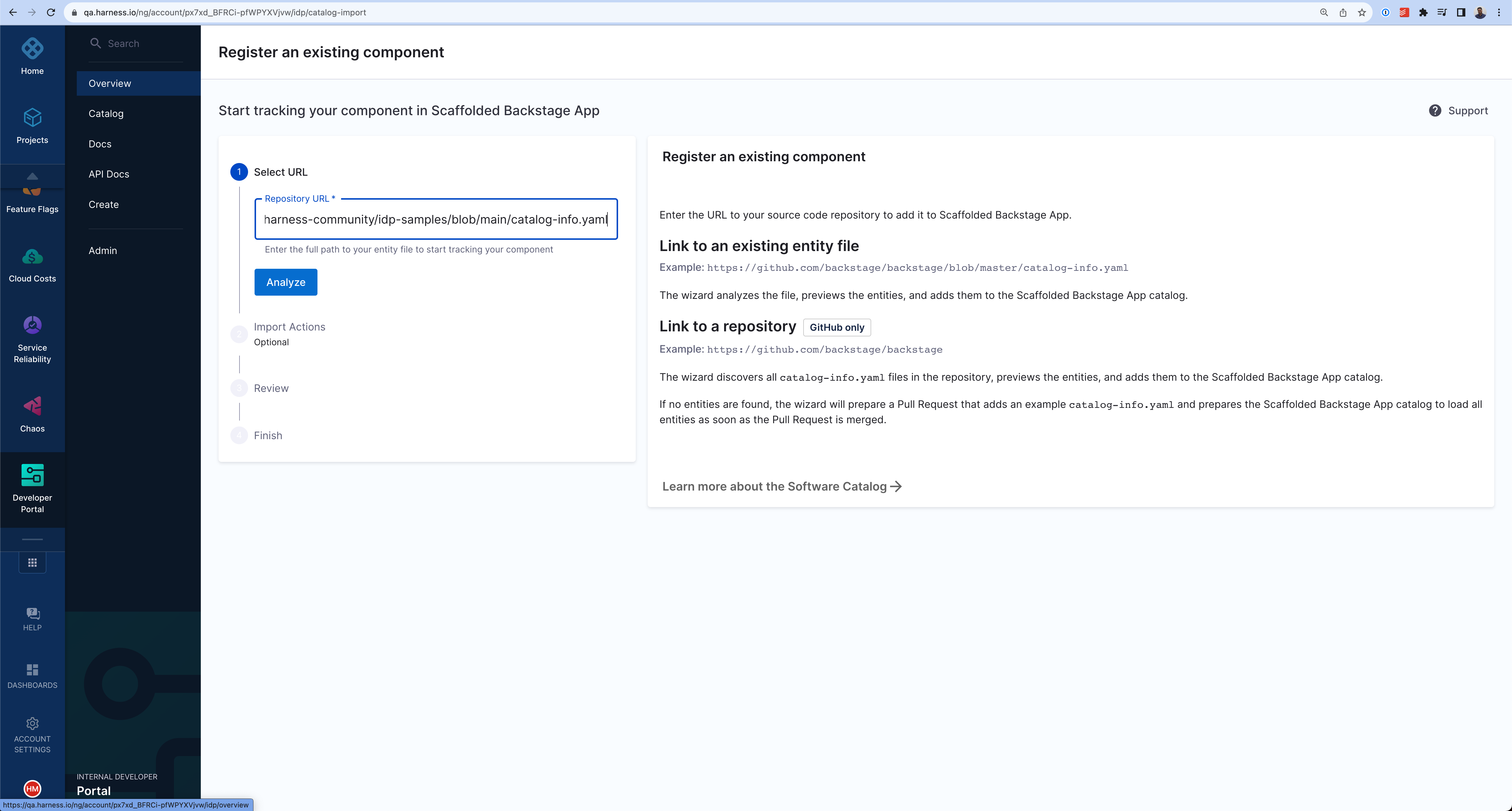 1. Once the file is created in your git repo, copy the full URL to the file. For example, https://github.com/harness-community/idp-samples/blob/main/catalog-info.yaml.