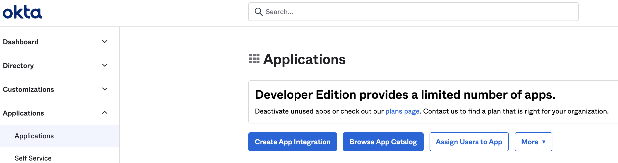 1. In your Okta administrator account, go to Applications, and then select Applications.
