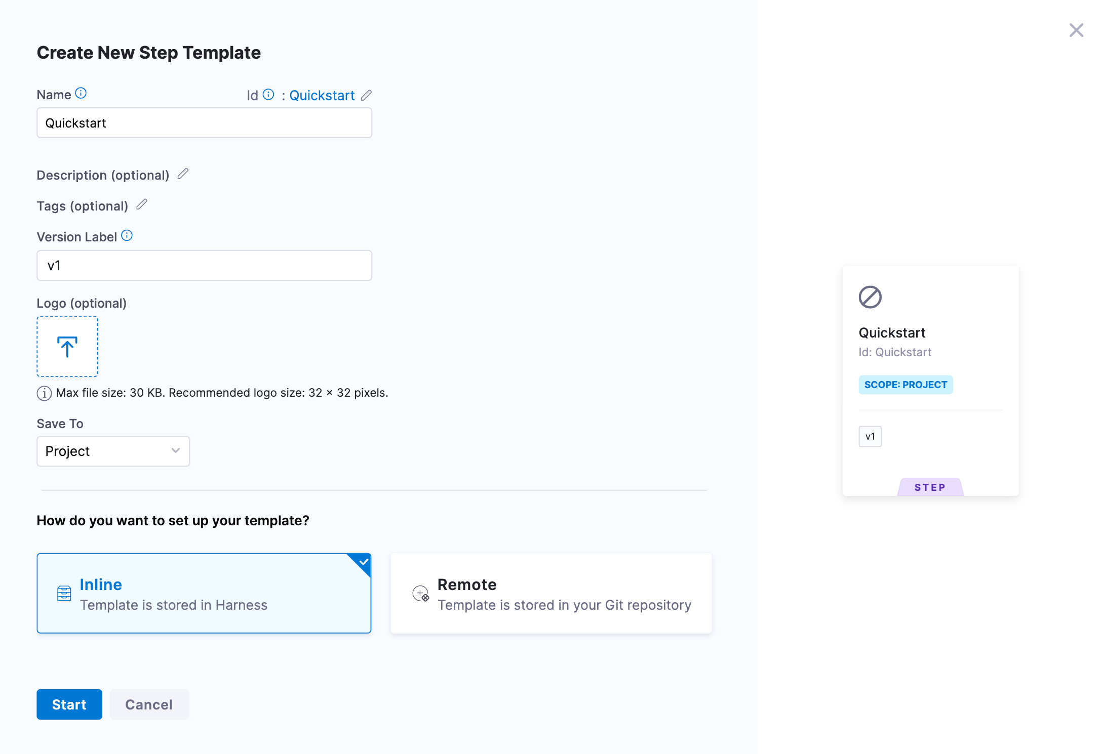 You can create a step template from your account, org, or project. ​This topic explains the steps to create a step template from the project scope.