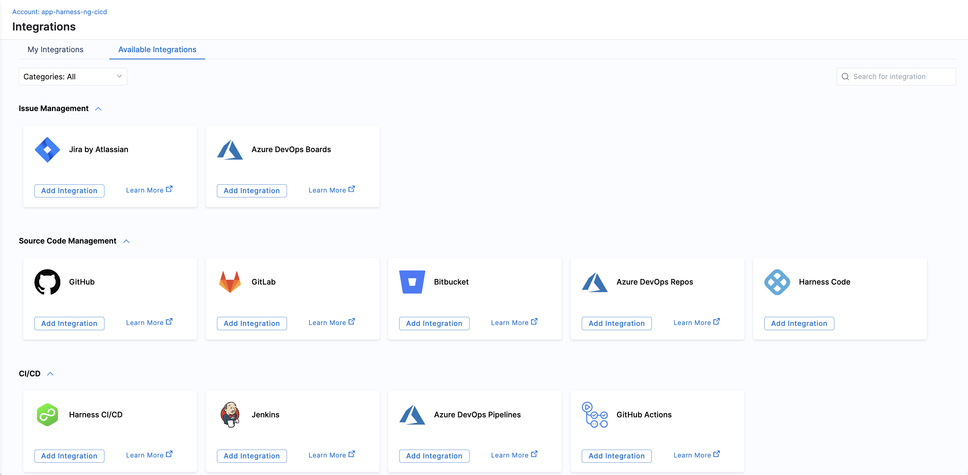 Navigate to Available Integrations and select the desired tool.