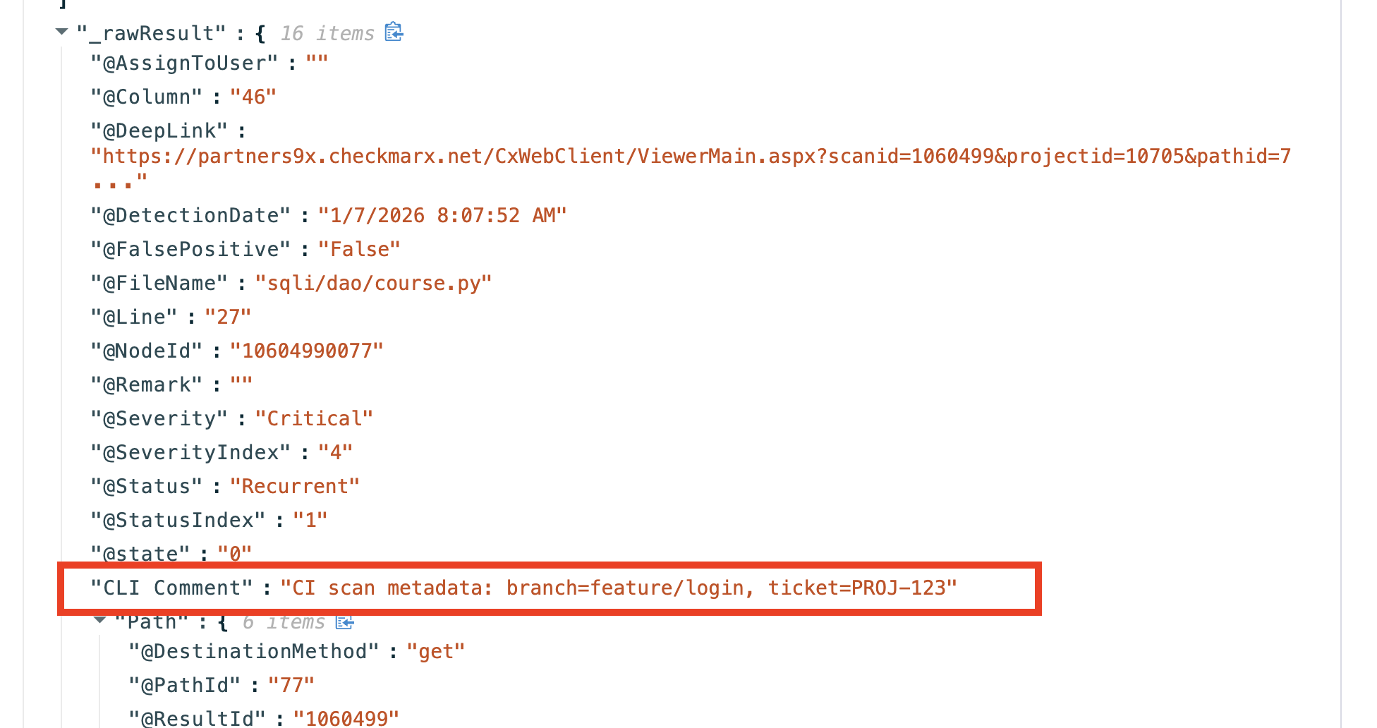 • Added a support to add the comment to the checkmarx scan step. This is useful for attaching metadata. When specified, the value is added under Issue Raw Details in the Issue Details view as a CLI Comment (STO-9592).