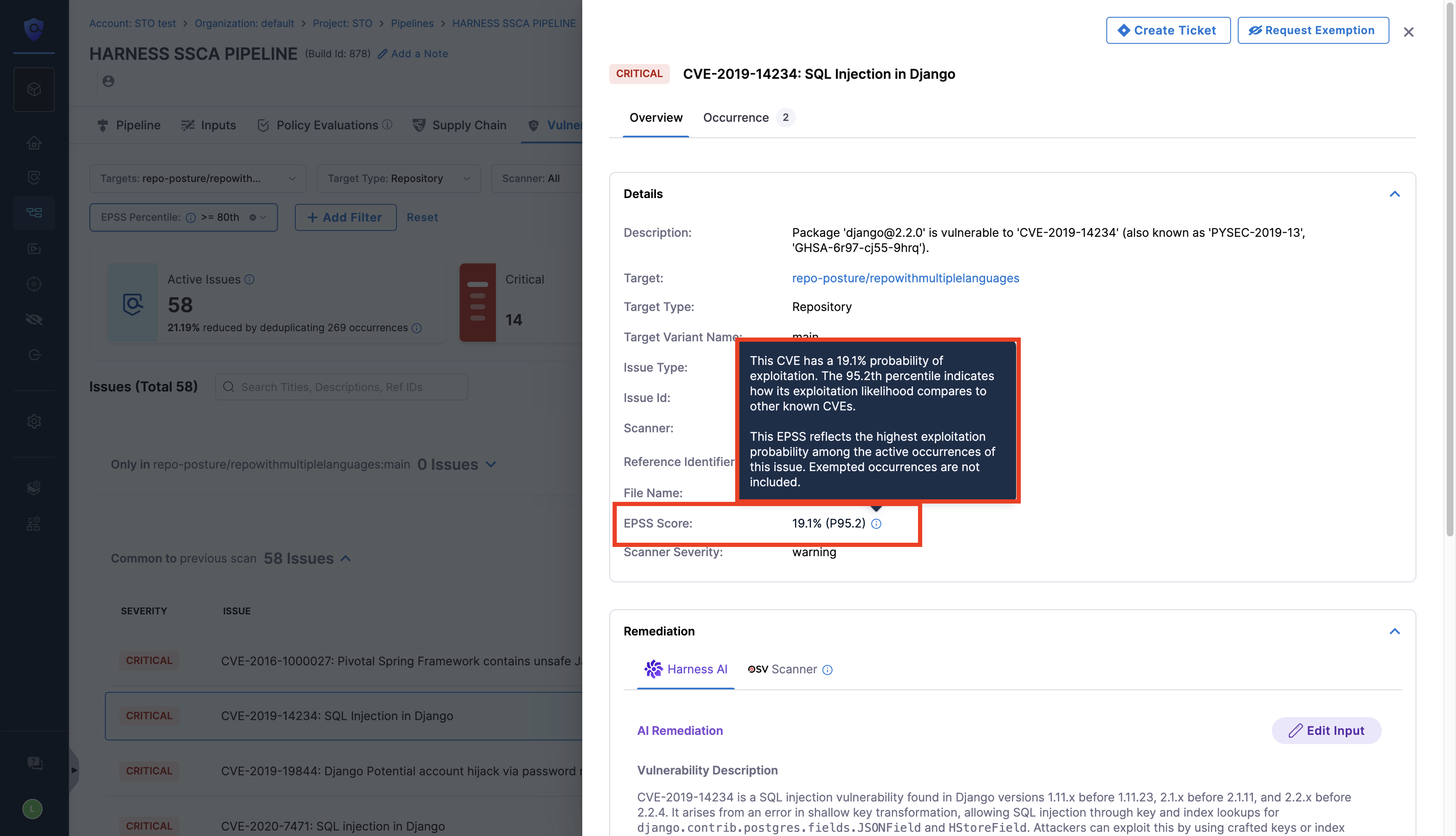 EPSS scoring: Introduced EPSS scoring for CVE-associated security issues on the Issues and Vulnerabilities page. This supports a risk-based approach, helps you focus on vulnerabilities based on real-world exploitation signals rather than theoretical impact alone. This feature is behind the feature flag STO_ISSUE_EPSS. Contact Harness Support to enable it.