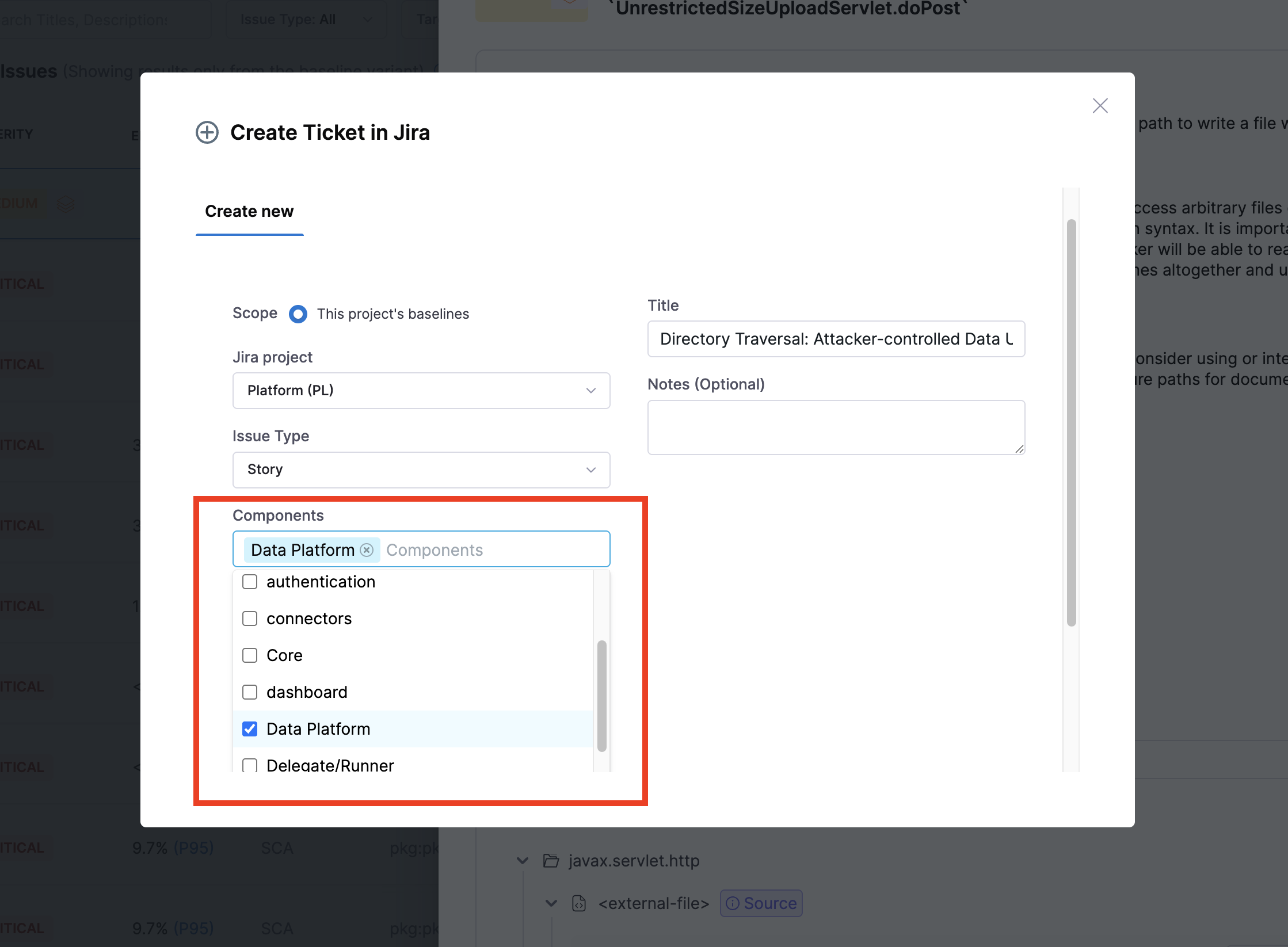 • Added support for the Components field in Jira ticket. Previously, users had to type values manually, but now they can select from existing components when creating Jira tickets (STO-10068).