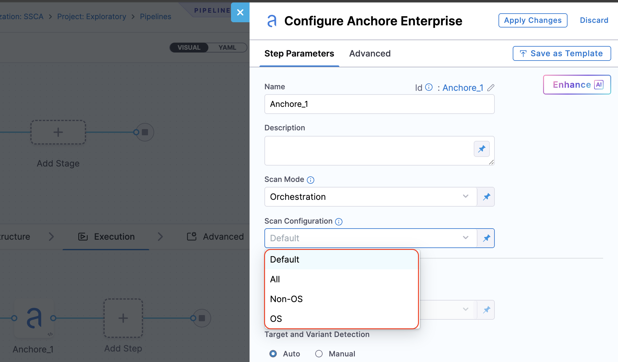 New scan configurations for Anchore Enterprise step
