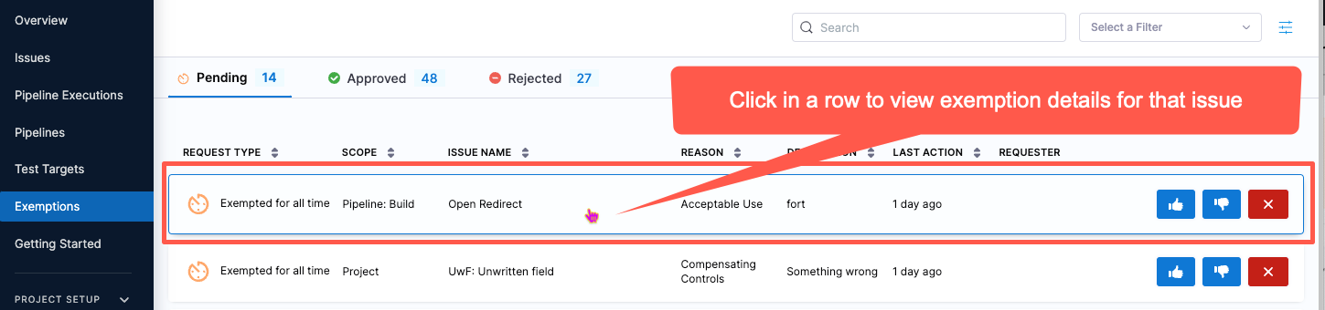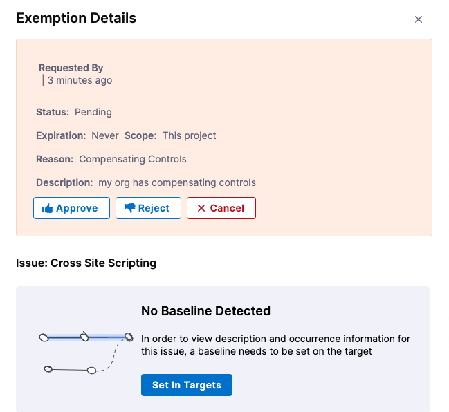 • Developers can request (but not approve) exemptions to unblock pipeline builds for specific issues.