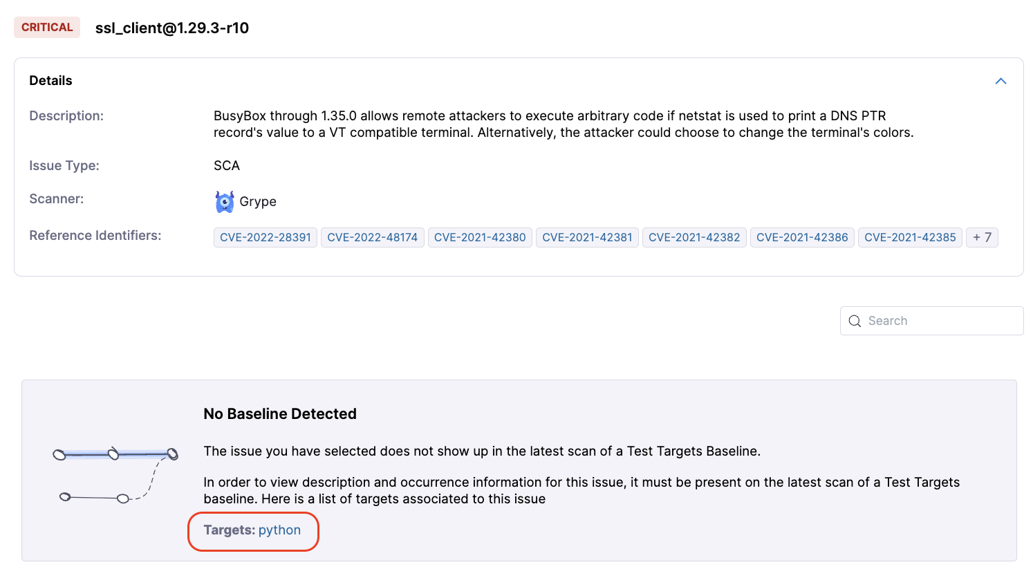 • Fixed an issue where the issue counts reported in output variables vs. the Security Tests page were inconsistent for scans of target baselines, or for targets with no specified baseline. (STO-5042)